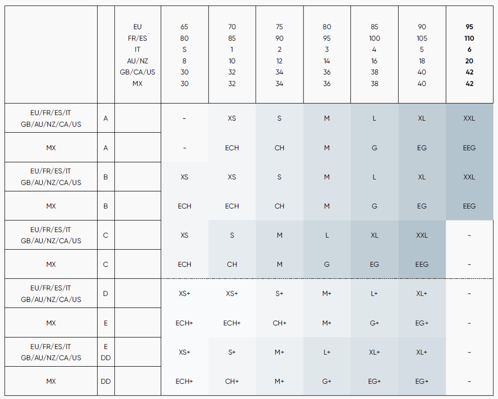 A melltartóméretek messze túlmutatnak a közismert DD kosáron. A sloggi-nál széles méretválasztékot kínálunk, hogy mindenki megtalálja a tökéletes illeszkedést: