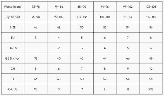 sloggi Mérettáblázat